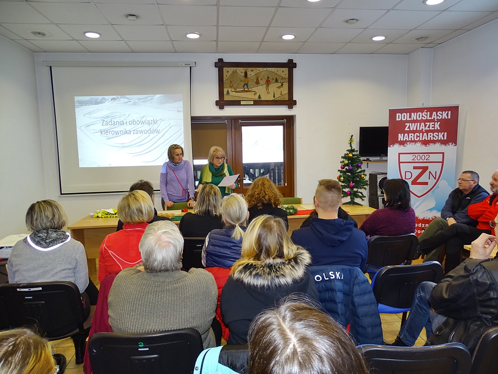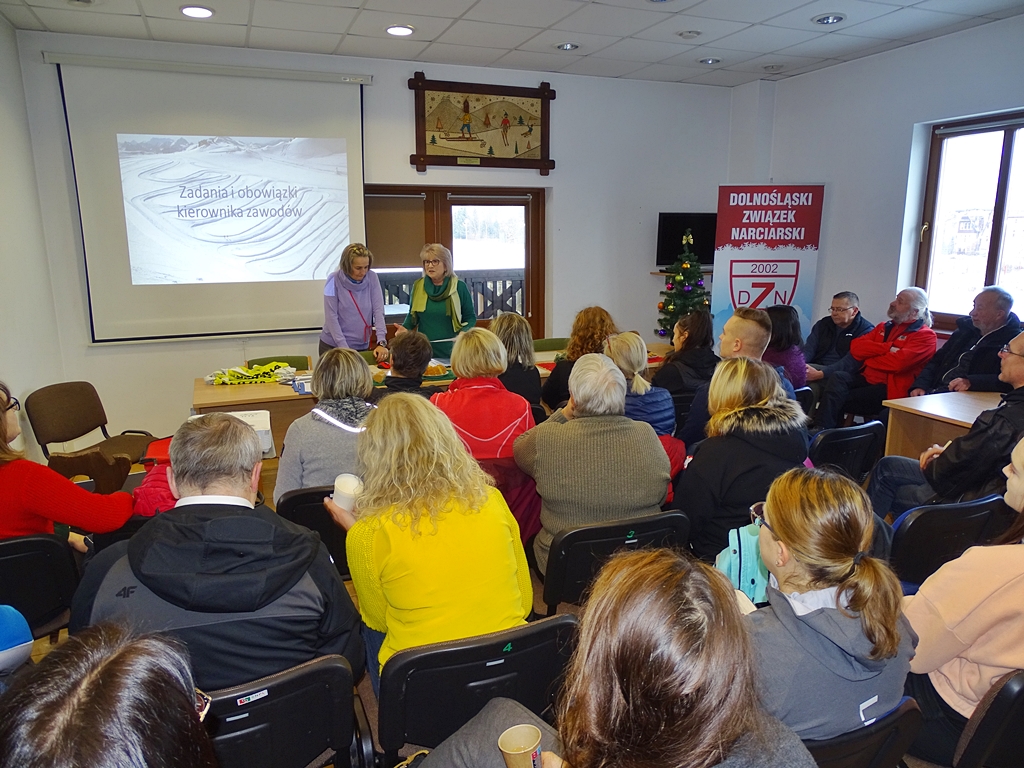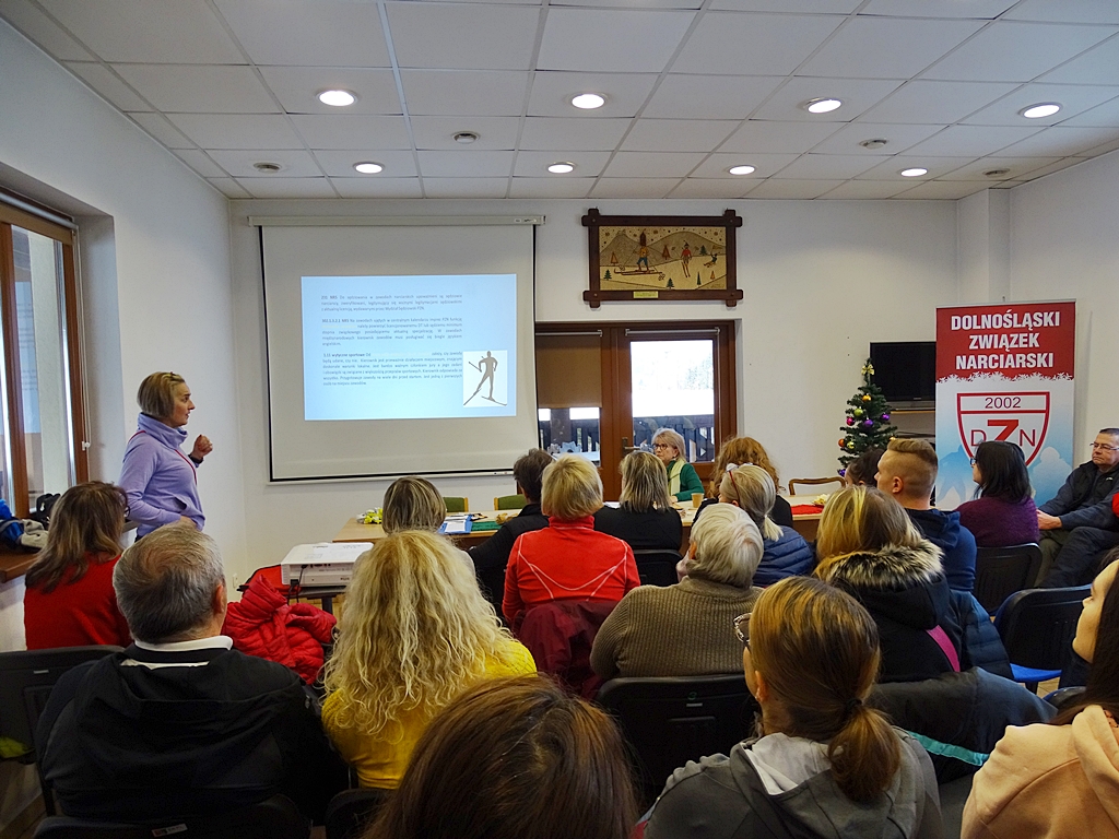 W dniu 03.12.2022 r. odbyło się seminarium sędziowskie Dolnośląskiego Związku Narciarskiego. Spotkanie poprowadziła p. Wiesława Kozłowska, która wygłosiła prelekcje o obowiązkach sędziów podczas zawodów narciarskich i biegowych. Kolejnym prelegentem była p. Dorota Dziadkowiec-Michoń (Delegat Techniczny PZN), która zapoznała sędziów z nowymi wytycznymi NRS.