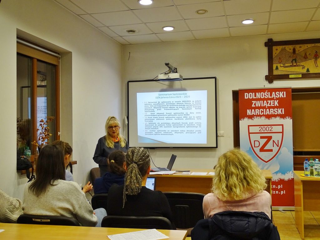 W czwartek, 6 listopada 2025 roku, w Transgranicznym Centrum Turystyki Aktywnej w Jeleniej Górze (ul. Czecha 14) odbyło się seminarium sędziowskie Dolnośląskiego Związku Narciarskiego. Spotkanie rozpoczęło się o godzinie 17:00 i zgromadziło liczne grono sędziów narciarskich.