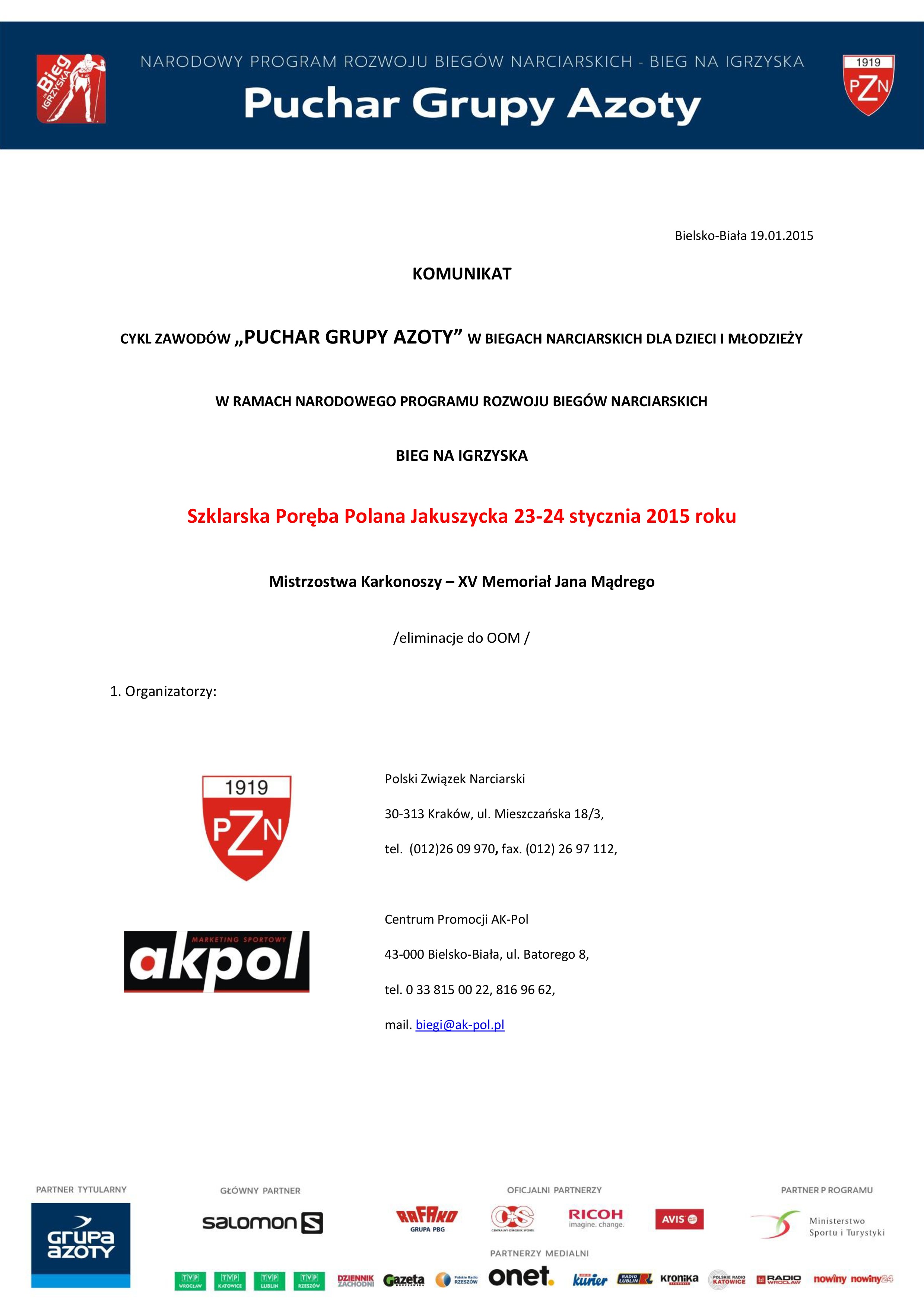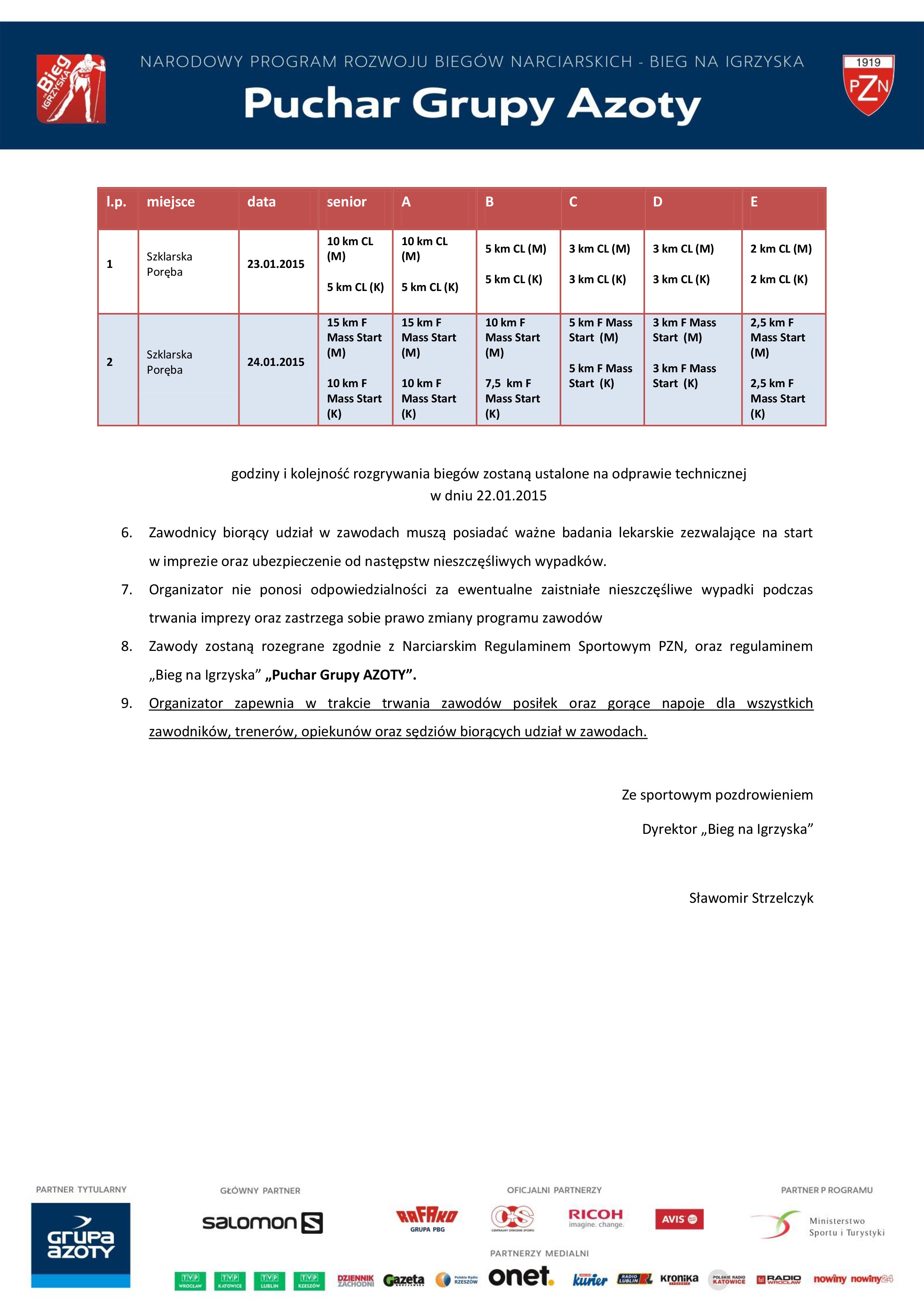 KOMUNIKAT ORGANIZACYJNY Puchar Grupy AZOTY Bieg na Igrzyska DZN 22 stycznia 2015 22 stycznia 2015 Galeria / start / Wszystkie [PDF] KOMUNIKAT ORGANIZACYJNY Puchar Grupy AZOTY Bieg na Igrzyska Facebook